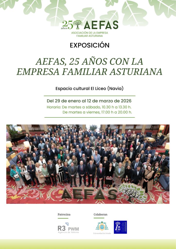AEFAS presentó el 29 de enero de 2026 en Navia la exposición AEFAS, 25 años con la empresa familiar asturiana, en la que se hace un recorrido por la historia de la asociación y de la de casi 80 grupos familiares asociados. La muestra contó con la presencia de la alcaldesa de Navia, Ana Isabel Fernández, y el presidente de AEFAS, Íñigo Cabal. La exposición, instalada en el Espacio Cultural Liceo de Navia, estará abierta al público (entrada libre) hasta el próximo día 12 de marzo de 2026.